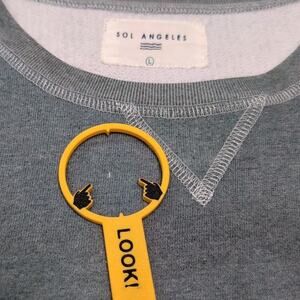 Sol Angeles Fleece Top Mens L Green Ivory Drip Dye Pullover Crew Sweatshirt USA