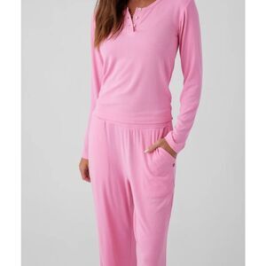 Sol Angeles Ribbed Long Sleeve Henley Punk Pink Size Medium NWT