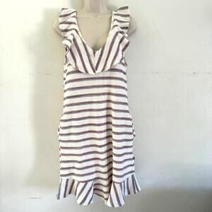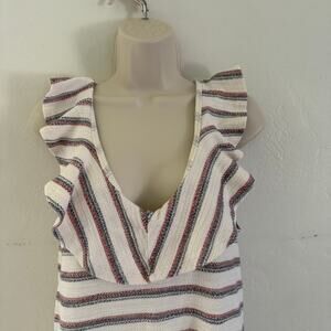 Sol Angeles Stripe Boucle Ruffle Dress V Neck Sleeveless White Red Blue Small