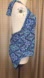 This halter style one piece swimsuit is a blue and purple paisley mosaic pattern. Adjustable tie top, and removable breast pads allow for coverage and comfortability. Wear this swimsuit on your next trip to the beach, pool, or lake vacation.