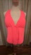 This halter style one piece swimsuit is a coral pink orange waffle ribbed texture. Adjustable tie top, and removable breast pads allow for coverage and comfortability. Wear this swimsuit on your next trip to the beach, pool, or lake vacation.