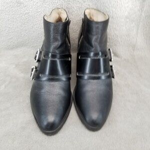 Sol Sana Shoes Womens EU 37 US 6.5 Black Leather Buckle Biker Buckle Ankle Boots