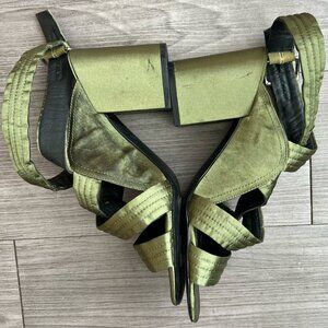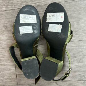 Sol Sana Strappy Block Heel Gabby Heel in Forest Green Satin Size EU38 / W7