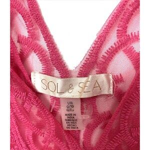 Sol & Sea Swimsuit Coverup Size L/XL Hot Pink Sheer Mesh Embroidery Periwinkle Tunic Floral beach vacation new without tag. Please see pictures for more details and accurate measurements