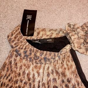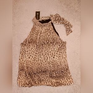 NWT stylish metallic leopard print sleeveless blouse with tie detail