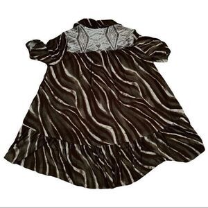 Sol R.H.R Women Button Up Blouse Hi-Low Collared Short Sleeve Animal Print Small