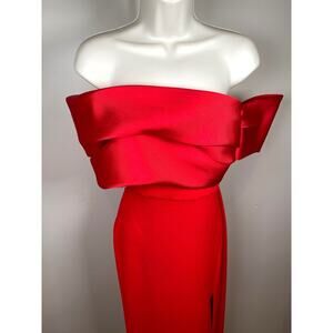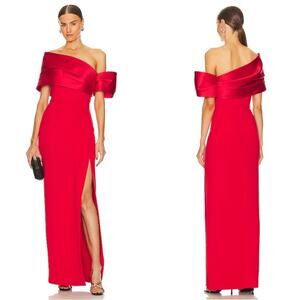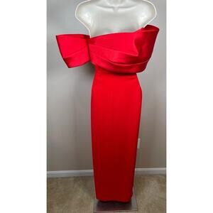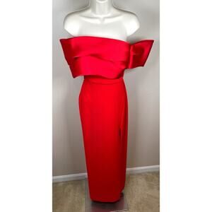 Solace London Alexis Off the Shoulder Puff Sleeve Asymmetric Red Maxi Dress Sz 2