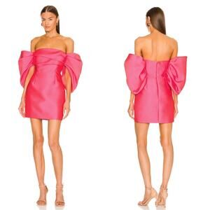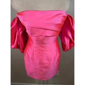 Solace London Elina Off the Shoulder Puff Sleeve Mini Dress in Ultra Pink Sz 4 is brand new with tags! Featuring:
