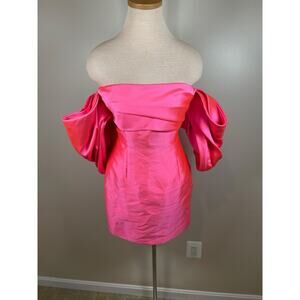 Solace London Elina Off the Shoulder Puff Sleeve Mini Dress in Ultra Pink Sz 4