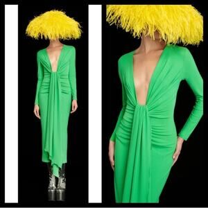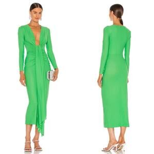 Solace London Lorena Draped Front Deep V Bright Green Midi Dress Size 6 is brand new with tags! Featuring: