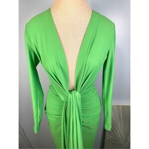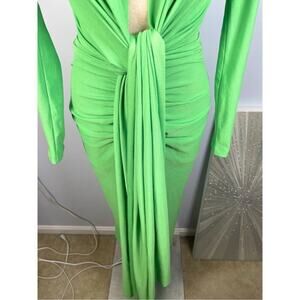 Solace London Lorena Draped Front Deep V Bright Green Midi Dress Size 6