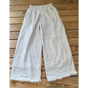 Solai Fringed Hem Linen Pants Size Small Women’s Cream Linen Rayon