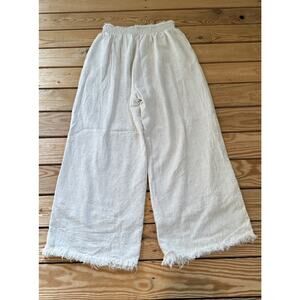 Solai Women’s Cream Linen Rayon Fringed Hem Linen Pants Size Small