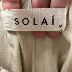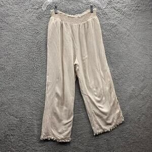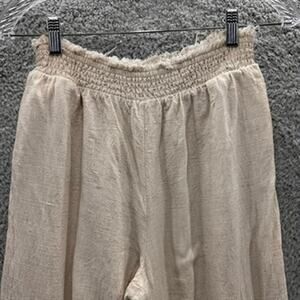 Solai Women's Medium Linen Blend Cropped Straight Leg Pants Raw Hem Lined