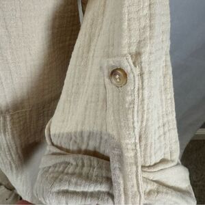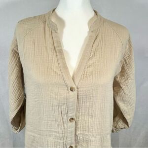 Solai the Label beige 100% cotton linen shirt dress with pockets size small
