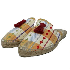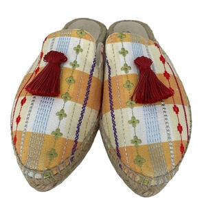 Solana Mules Women's 8 Yellow Cream Checked Embroidered Flats Espadrilles Shoes