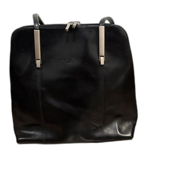 Solano Paris Black Leather Shoulder Bag with silver metal accents.