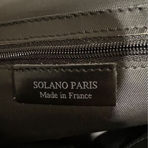 Solano Paris Black Leather Shoulder Bag with silver metal accents. Made in France.