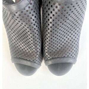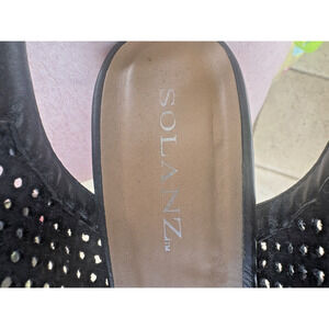 Solanz Sandals Womens 6M Roar Black Perforated Peep Toe Slingback Mid Block Heel