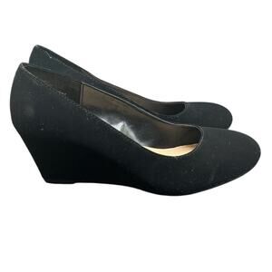 Solanz Trudie Wedges Black Faux Suede Size 9M Women’s Round Toe Platform Heel