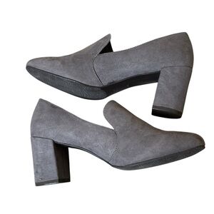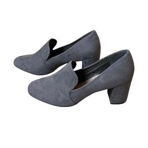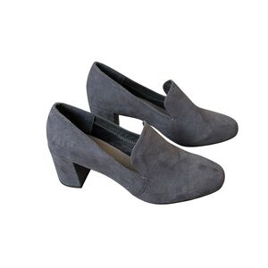 Solanz Womens Gray Loafer Heels 7M Faux Suede Capsule Classic Office Minimalist