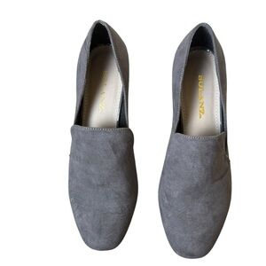 •Style Profile: Solanz Womens Gray Loafer Heels 7M Faux Suede Capsule Classic Office Minimalist