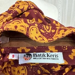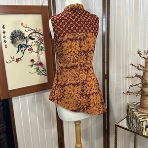 GORGEOUS light weight short sleeve shirt for the summer, maroon and yellow print. Perfect for a date at the farmers market or an afternoon spent cooling off during a wander around the local art museum.