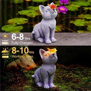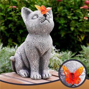 Solar Cat Garden Statue - Outdoor Cat Statue with Solar Butterfly