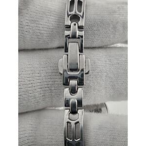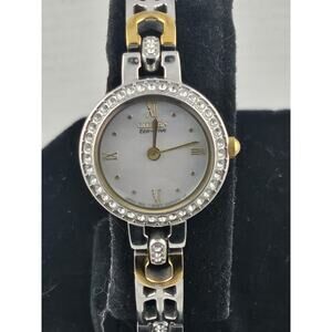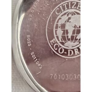 The Solar Citizen EcoDrive Ladies Mother Of Pearl Dial Watch is a vintage timepiece from the 1990s, featuring a unique combination of solar luxury design elements. This limited edition watch from the Silhouette Collection boasts a stunning mother of pearl dial with crystal accents and a Swarovski Crystal bezel, exuding elegance and sophistication. With a water resistance of 30 meters and a reliable quartz movement, this wristwatch offers both style and functionality. The fold-over push-button deployant closure and bracelet band add to its luxurious appeal, making it a must-have for any woman looking for a classic yet contemporary accessory. This watch retails on the Citizen website for $375. This watch has been tested and is keeping time accurately.