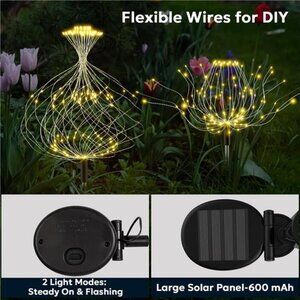 Solar Lights Outdoor Decorative: Flexible copper wires allow endless DIY possibilities—craft unique shapes like flowers, spirals, or hearts. Lightweight and easy to set up, these firework lights are perfect for enhancing patios, pathways, lawns, and gardens during holidays, weddings, Christmas, party or everyday use.