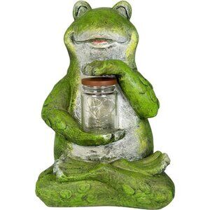 Solar Frog Statue with LED Firefly Lights Glass Jar - 7"L x 6"W x 11"H