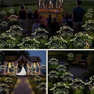 Perfect Outdoor Party Lights Holiday Decorations & Housewarming Gifts - They are bright and can be shaped to fan out from the stem giving them a whimsical look. Perfect addition to garden,yard,backyard,pathway,flower bed,front house, flower bed,porch,yard decor. Twinkling solar firework lights great for halloween,christmas,party,wedding,thanksgiving day,holiday decorations.