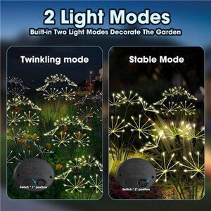 2 Lighting Modes & DIY Solar Garden Art Decor - 2PCS Solar firework lights,2 lighting modes including steady on and flashing,solar outdoor lights with flexible copper wire,you can DIY your want shape,such as fireworks,These solar Path lights will brings you unlimited surprises.