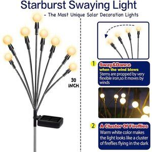 【SWAYING WHEN WIND BLOWS,IMITATE REAL FIREFLY】The most unique solar decorative lights in the market, our solar swaying light is propped by very soft & flexible wires, so the light sways when the wind blows, exactly like a cluster of firefly flying in the dark