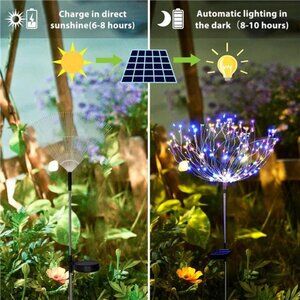 120 LED Solar Lights for Outside: Our upgraded creative solar garden fireworks lights have 120 LED beads, more beautiful and brighter than the other fireworks lights with 105 beads. You can DIY any shape as you like to create a beautiful and colorful light spots lifelike fireworks, lighting up your beautiful garden, yard, sidewalk, etc.