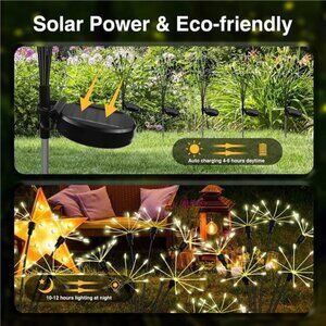 Perfect Outdoor Party Lights Holiday Decorations & Housewarming Gifts - They are bright and can be shaped to fan out from the stem giving them a whimsical look. Perfect addition to garden,yard,backyard,pathway,flower bed,front house, flower bed,porch,yard decor. Twinkling solar firework lights great for halloween,christmas,party,wedding,thanksgiving day,holiday decorations.