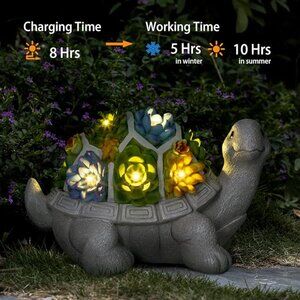 Solar Garden Outdoor Turtle Statue with Succulent 7 LED Lights Outdoor Decor