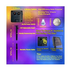 8 LIGHTING MODES: This string lights has ON/OFF button and a MODE button on the back of the solar panel. Press the mode button, you can choose different light modes【waves/ combination/ sequential/ gradual/ chasing flash/ slow fade/ twinkle flash/ steady on】to meet your different needs. Tip: The built-in memory chip saves your last mode setting.