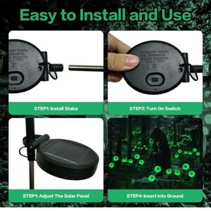 These are in excellent condition. They have been used and may show minor signs of wear. This are solar powered no batteries required. They light up green. You are getting one set. The stock pictures show multiples but I only posted to show what they look like.