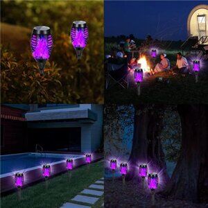 🧿🔥【Dancing Flickering Flames】: AOUNQ solar torch light with flickering flame purple are designed according to real flames, projecting a safe, soft and mood-enhancing light while flashing gorgeous dancing flames. This 12 LED purple solar lights outdoor decorative can be used as a street light to illuminate your house, garden, Yard, Patio, passageway. adding a wonderful and warm addition to your party, camping, barbecue, wedding, holiday gathering, etc. bonfire atmosphere.