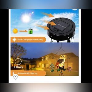 Solar OWL Wind-chimes. Outdoor decor solar powered lights up at night. Super cute