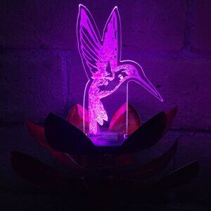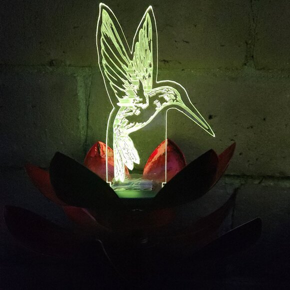* Beautiful color-changing solar light at night with a display of optical illusion hummingbird.