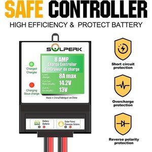 🧿【Smart Charge Controller】The charging efficiency of this upgraded 8A controller is 20%-30% higher than other controllers on the market. Its intelligent three-stage charging design effectively prevents the battery from overcharging, over-voltage and short circuit. It takes no power from the battery. You will clearly know the charging status of the battery through the two indicator lights on the controller.