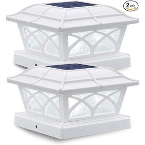 Solar Post Cap Lights Outdoor Glass 2 Modes 8 LEDs 4x4 5x5 6x6 Posts Fence Deck