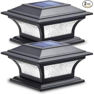 Solar Post Lights Glass LED Fence Cap Light 2 Modes for 4x4 5x5 6x6 Posts Deck