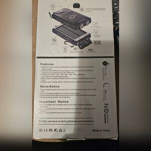 Stay powered on the go with the Solar Power Bank. Featuring a sleek black and orange design, this power bank is perfect for outdoor adventures. Compatible with iOS and Android devices, it ensures your gadgets stay charged with solar efficiency. NWT
