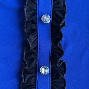 Solar Ruffle Blouse Womens Small (marked XL) Y2K Colorblock Rhinestone Button