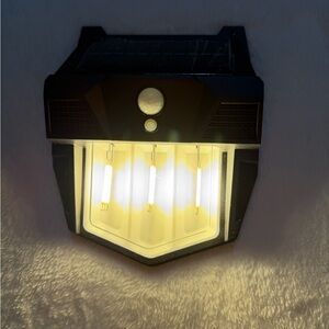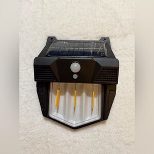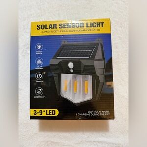Solar sensor light with LED. Features motion sensor and waterproof design. Ideal for outdoor use.