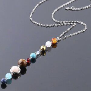 ✨From our new jewelry line "Space Odyssey"! Enjoy this beautiful necklace & show off your love for space, planets, & science! Planets are lined in order & create a unique creative fashion statement. Features the sun, Mercury, Venus, Earth, Mars, Jupiter, Saturn, Uranus, Neptune & Pluto. Fantastic gift for teachers, science lovers, & space enthusiasts! ✨