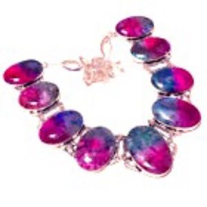 Multi Solar Quartz Vintage Style Gemstone 925 Sterling Silver Necklace 18" -absolutely Stunning.